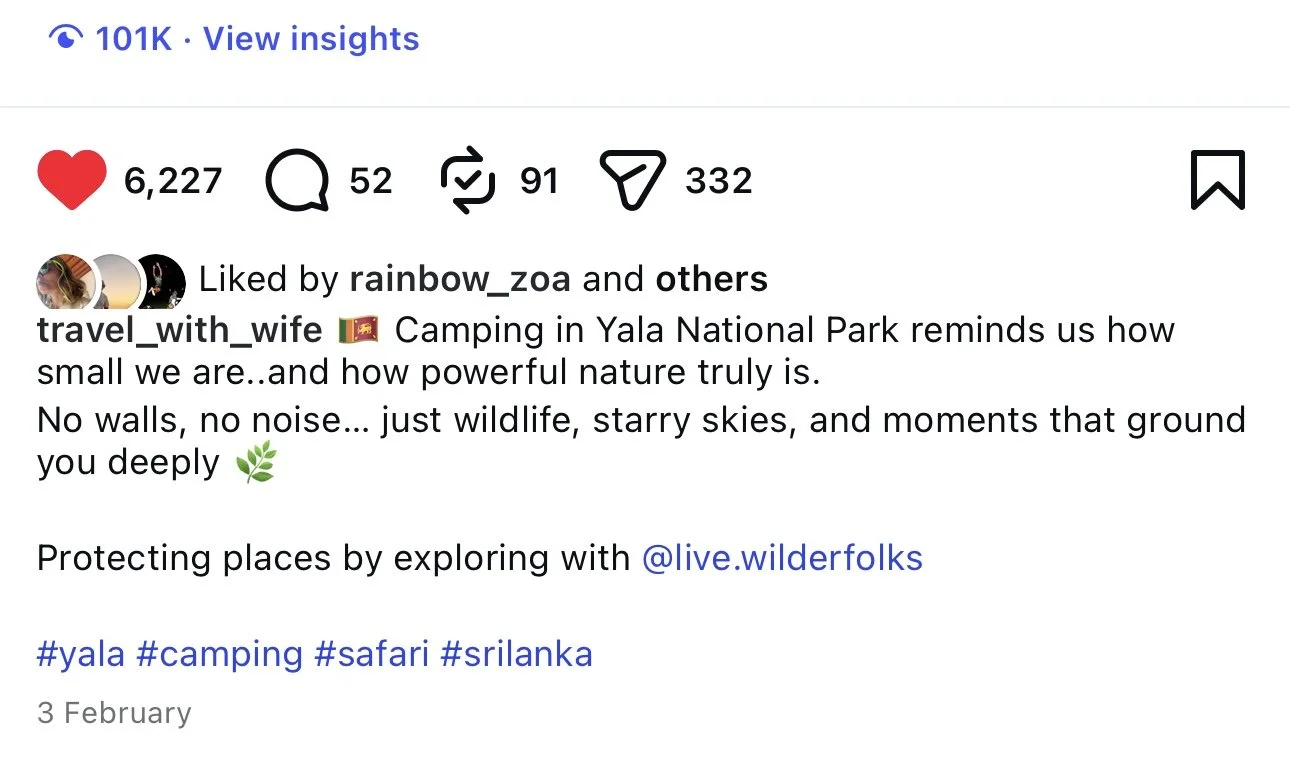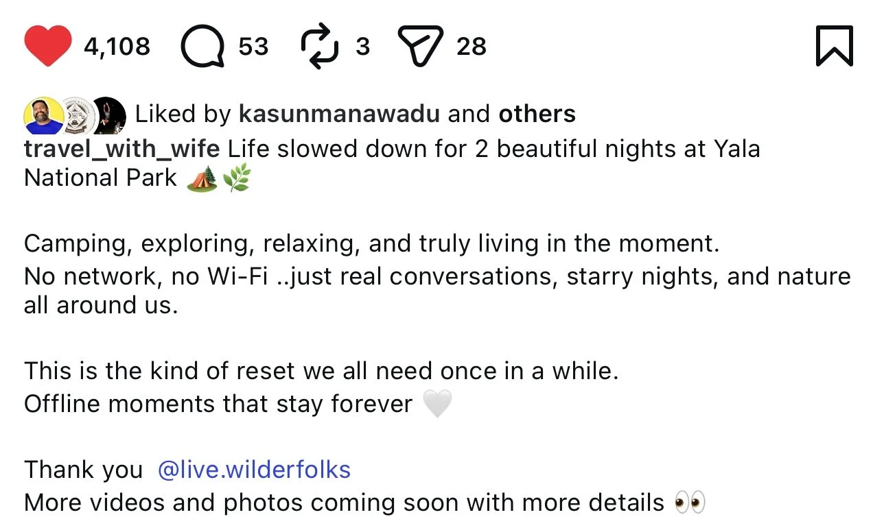 Restorative, mindful, and community-centered camping journeys with gentle participation and guided safaris within Sri Lanka’s national parks.