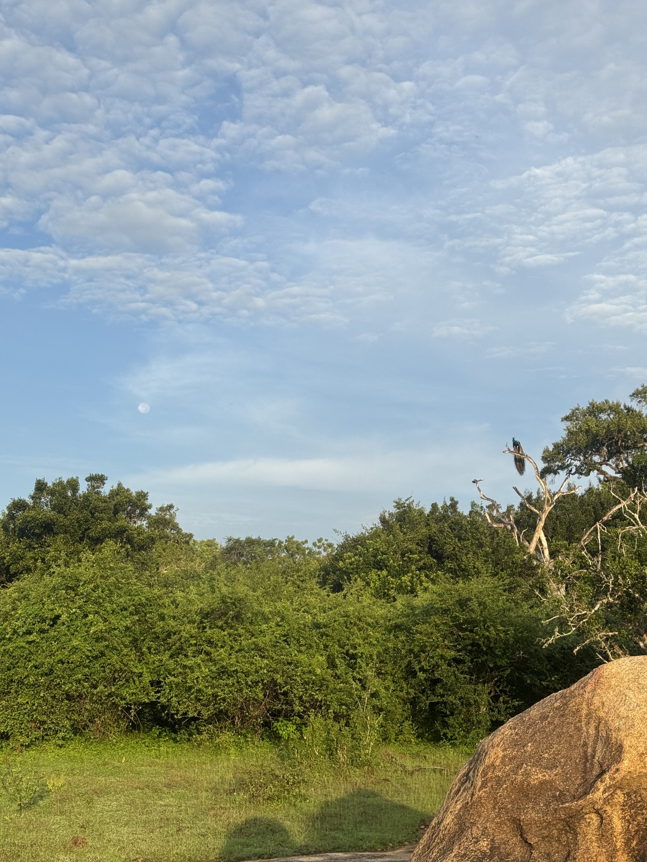 In Sri Lanka, that shift can be immediate. The light may grow warmer and more golden as the afternoon leans toward evening. The wind may carry the smell of dry grass, damp earth, leaves, or water, depending on where you are. There is often a sense that the space around you has become larger, even when you are surrounded by trees.