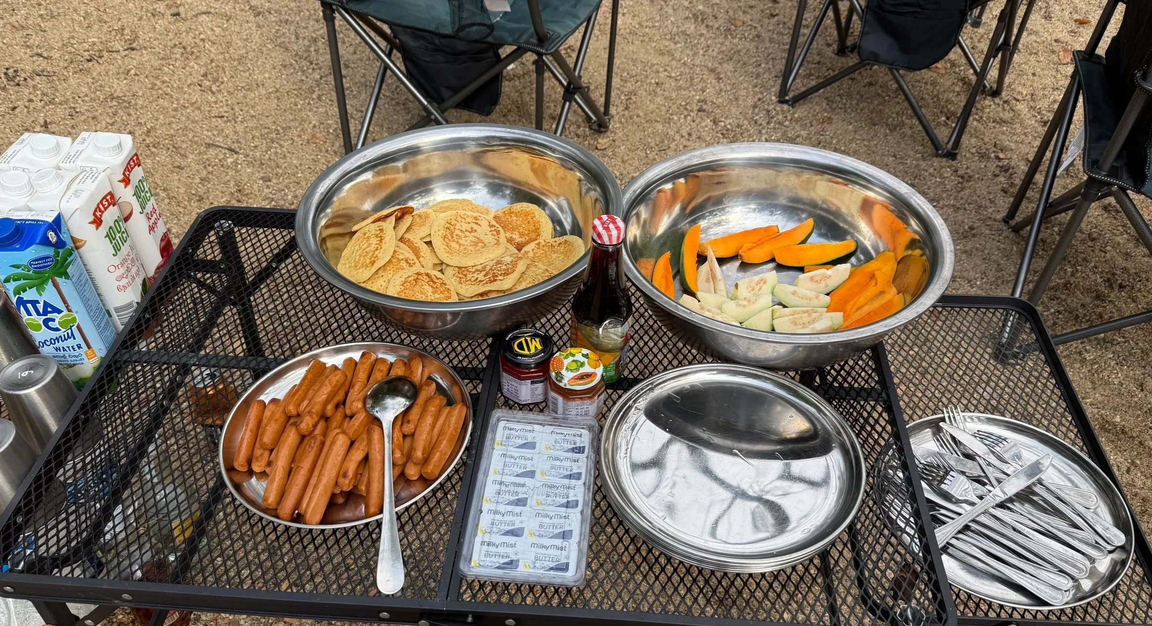 When people help in even small ways — preparing something simple, passing items, tending to a task, arranging a shared area, pouring drinks, assisting with setup around the meal — food becomes something the group has arrived at together. The meal feels more connected to the life of the camp because the camp has shaped its making.